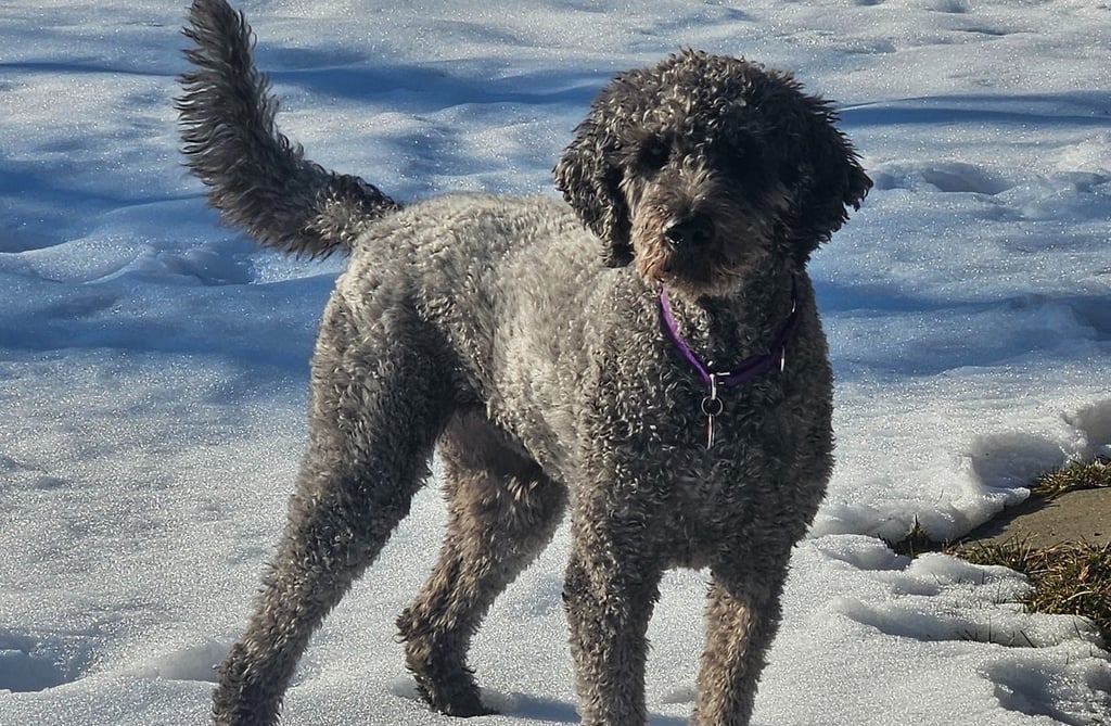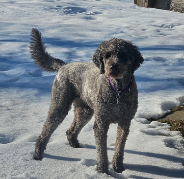 My labradoodle loves the snow. She jumps and spins when it snows. She loves to eat the snowballs that I throw to her. BUT now she's struggling to get through it. It's icy, and she can't maneuver well, especially since she's over 9 years old.